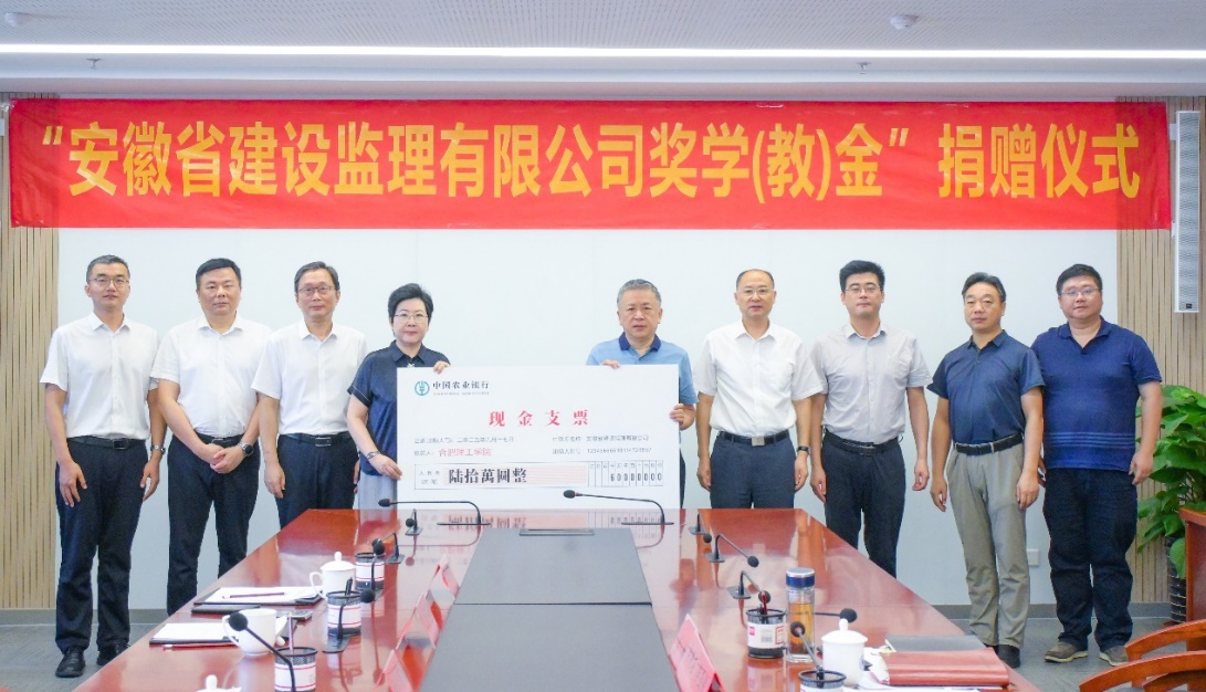 吴玉程代表学校对安徽监理的慷慨捐赠表示衷心的感谢。他希望校企双方在科技赋能、产业升级、成果转化等领域加强合作,可通过搭建学生实习实践平台、联合开展课题研究、共建实训中心、聘请校外导师等合作模式,共同培养既有理论功底、又有实践能力的优秀人才,实现校企共同发展、互利共赢。