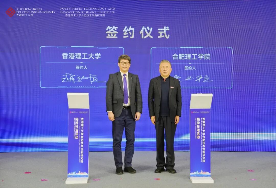 校党委副书记、副校长李先强代表学校与香港理工大学合肥技术创新研究院签订战略合作协议。