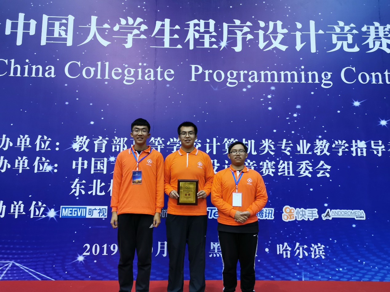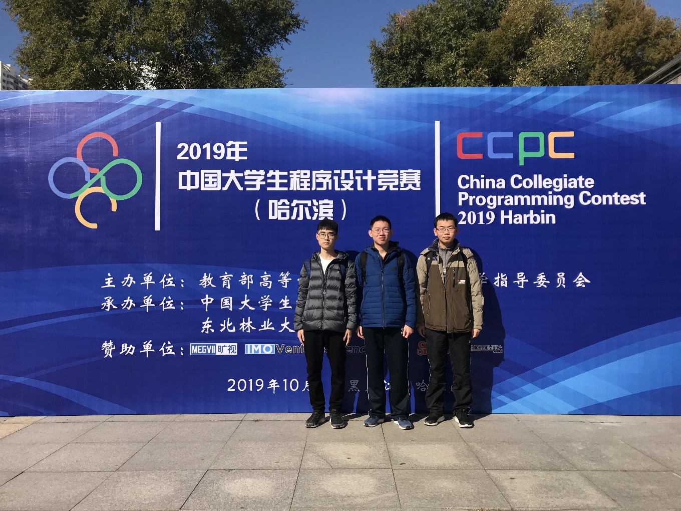 2019年10月12-13日,中国大学生程序设计竞赛(CCPC2019)哈尔滨站在东北林业大学举行。经过网络赛的选拔,包括清华大学、北京大学在内的167所高校、共272支队伍参加了本次现场赛。我校ICPC国际大学生程序设计竞赛集训队派出两支队伍,分别为万象城awcsport官网2018级实验班学生组成的“零叉八C”队和2019级实验班新生组成的”鸿蒙”队,指导教练是ICPC集训队主教练杨亚老师。