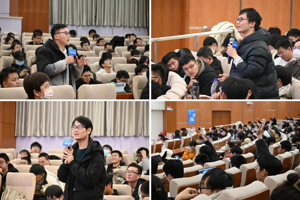 王千祥以新技术AI编程为切入点,引出对代码大模型的讲解,阐明大模型时代已经到来,并进一步介绍了大模型时代的软件工程范式,继而从实际应用场景出发,向同学们介绍了多种大模型的IDE插件,带领同学们了解了华为的智能化研发路程和华为云的CodeArts Snap。王千祥以CodeArts Snap为例,向同学们演示了大模型的代码能力,同时解释了后AI时代与前AI时代相比,大模型系统测试的特点变化。讲座最后回归华为的愿景与使命:把数字世界带入每个人、每个家庭、每个组织,构建万物互联的智能世界。深入浅出的讲解内容,让同学们对于大模型有了更为具象和深入的认识,现场同学积极思考、踊跃提问,氛围愉快热烈。